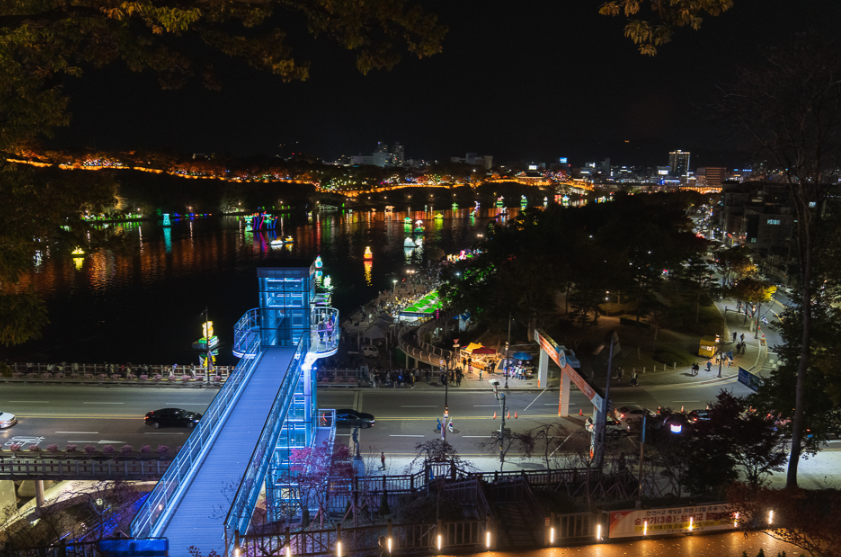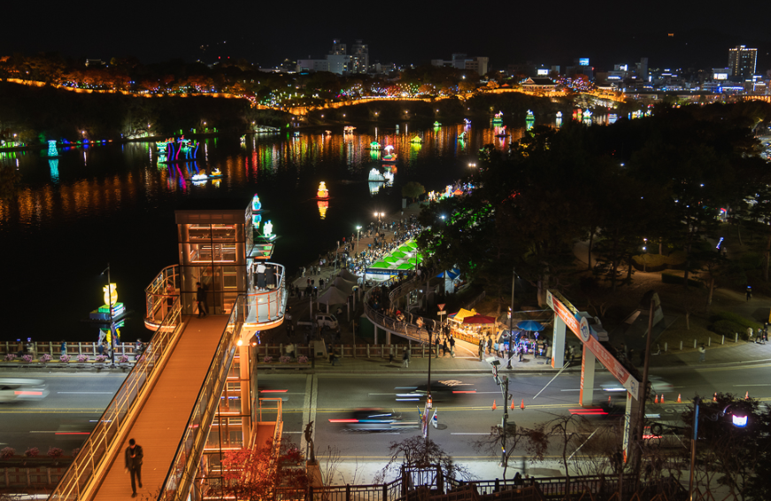 해질 무렵 남강변에 서 있으면, 등불이 켜지기 전의 고요가 찾아옵니다. 곧이어 강 전체가 불빛으로 차오르며, 사람들의 표정에도 미소가 번집니다. 부교를 건너는 발걸음 하나하나가 마치 강 위를 걷는 듯 신비로운 체험으로 남습니다.